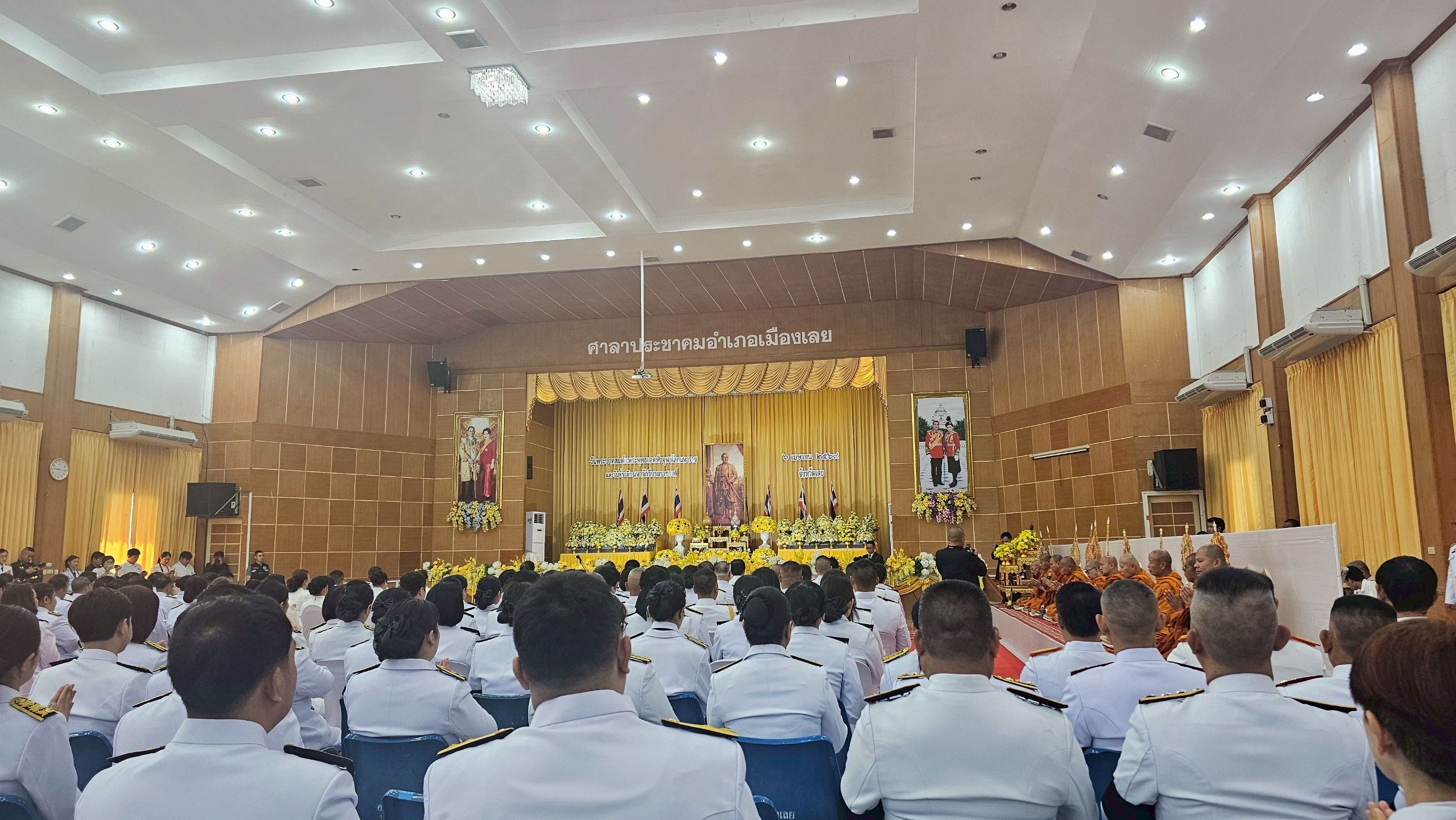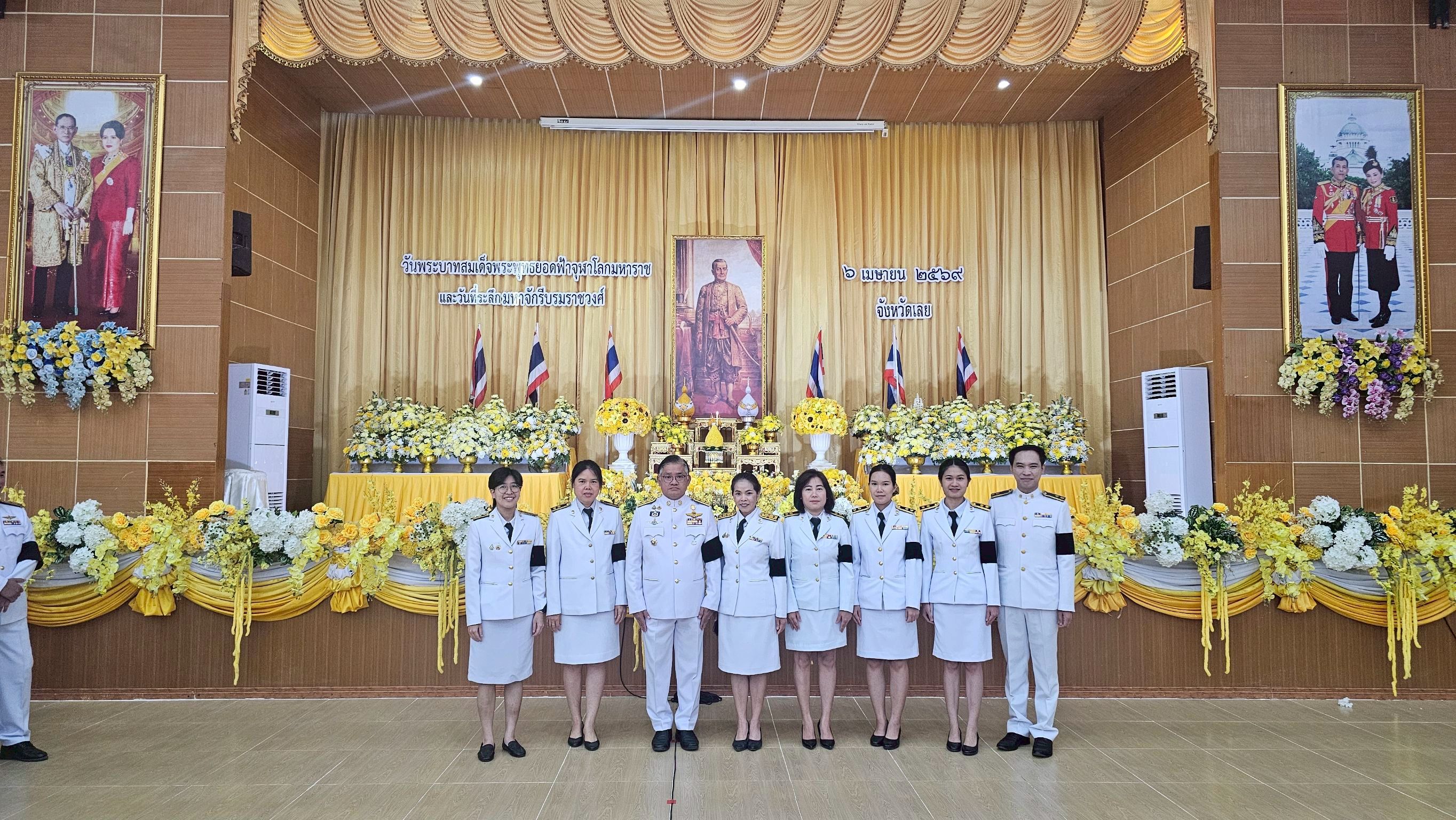 วันจันทร์ที่ ๖ เมษายน พ.ศ.๒๕๖๙ นายทัศน์พล เรืองศิริ ผู้อำนวยการสำนักงานส่งเสริมการเรียนรู้ประจำจังหวัดเลย มอบหมายให้นางสาวพรทิวา จันทศร นักวิชาการศึกษาชำนาญการ พร้อมด้วยบุคลากรสำนักงานส่งเสริมการเรียนรู้ประจำจังหวัดเลย เข้าร่วมพิธีวางพานพุ่มถวายราชสักการะ พระบาทสมเด็จพระพุทธยอดฟ้าจุฬาโลกมหาราช วันที่ระลึกมหาจักรีบรมราชวงศ์ ตรงกับวันที่ ๖ เมษายน ของทุกปี เพื่อเป็นการน้อมรำลึกถึงพระเกียรติคุณ และแสดงความกตัญญูกตเวทีต่อองค์ พระบาทสมเด็จพระพุทธยอดฟ้าจุฬาโลกมหาราช และมหาจักรีบรมราชวงศ์ โดยมี นายชัยพจน์ จรูญพงศ์ ผู้ว่าราชการจังหวัดเลย เป็นประธานในพิธี ณ ศาลาประชาคมอำเภอเมืองเลย จังหวัดเลย