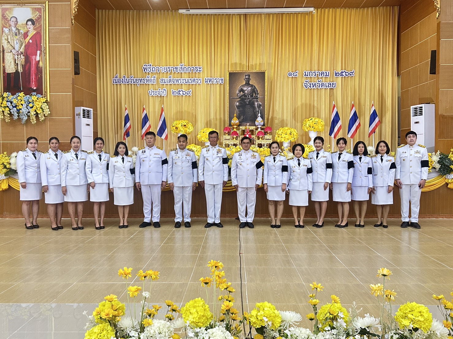 นายชัยพจน์ จรูญพงศ์ ผู้ว่าราชการจังหวัดเลย เป็นประธานในพิธีถวายราชสักการะ เนื่องในวันยุทธหัตถี สมเด็จพระนเรศวร มหาราช เพื่อแสดงความจงรักภักดี และน้อมรำลึกถึงพระมหากรุณาธิคุณอันหาที่สุดมิได้ ที่พระองค์ทรงมีต่อประเทศชาติและปวงชนชาวไทย
