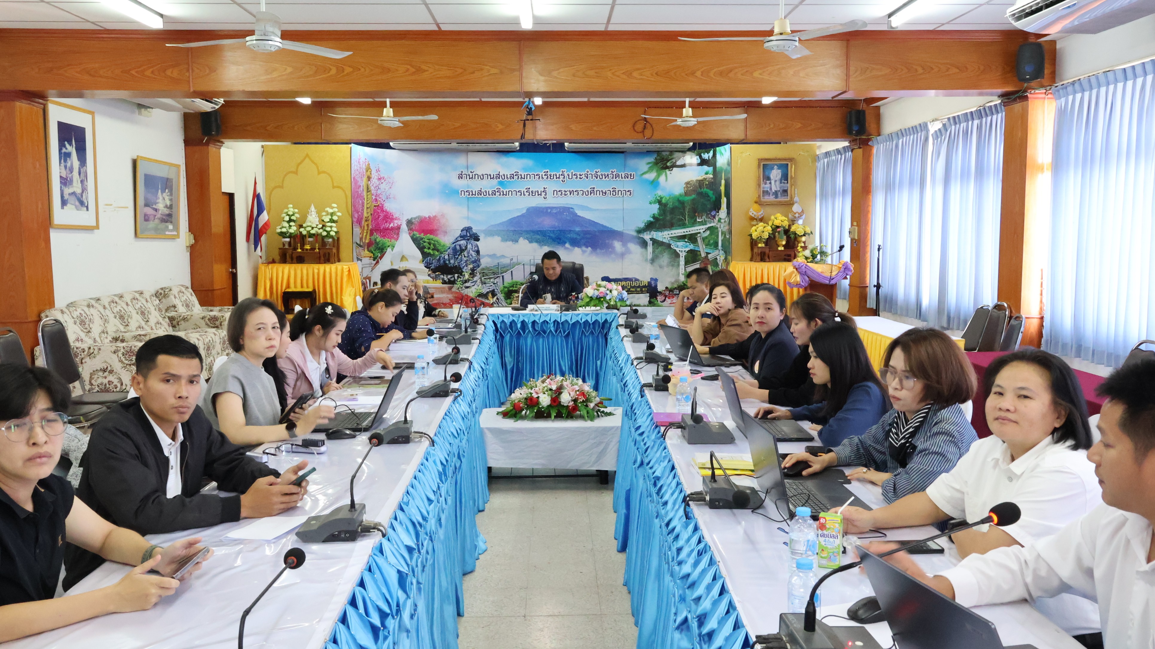 วันศุกร์ที่ ๒๐ กุมภาพันธ์ พ.ศ. ๒๕๖๙ เวลา ๑๐.๐๐ น. นายทัศน์พล เรืองศิริ ผู้อำนวยการสำนักงานส่งเสริมการเรียนรู้ประจำจังหวัดเลย เป็นประธานดำเนินประชุมชี้แจงแนวทางการขับเคลื่อนการใช้งานระบบสารบรรณอิเล็กทรอนิกส์ E-Office สำนักงานส่งเสริมการเรียนรู้ประจำจังหวัดเลย เพื่อให้สถานศึกษาในสังกัดมีความรู้ ความเข้าใจเกี่ยวกับขั้นตอน วิธีการใช้งาน และกำหนดแนวปฏิบัติร่วมกันในการรับ–ส่งหนังสือราชการ การจัดเก็บเอกสาร และการติดตามงานผ่านระบบอิเล็กทรอนิกส์ให้เป็นไปในทิศทางเดียวกัน โดยมีนายลัทธพล คึมยะราช