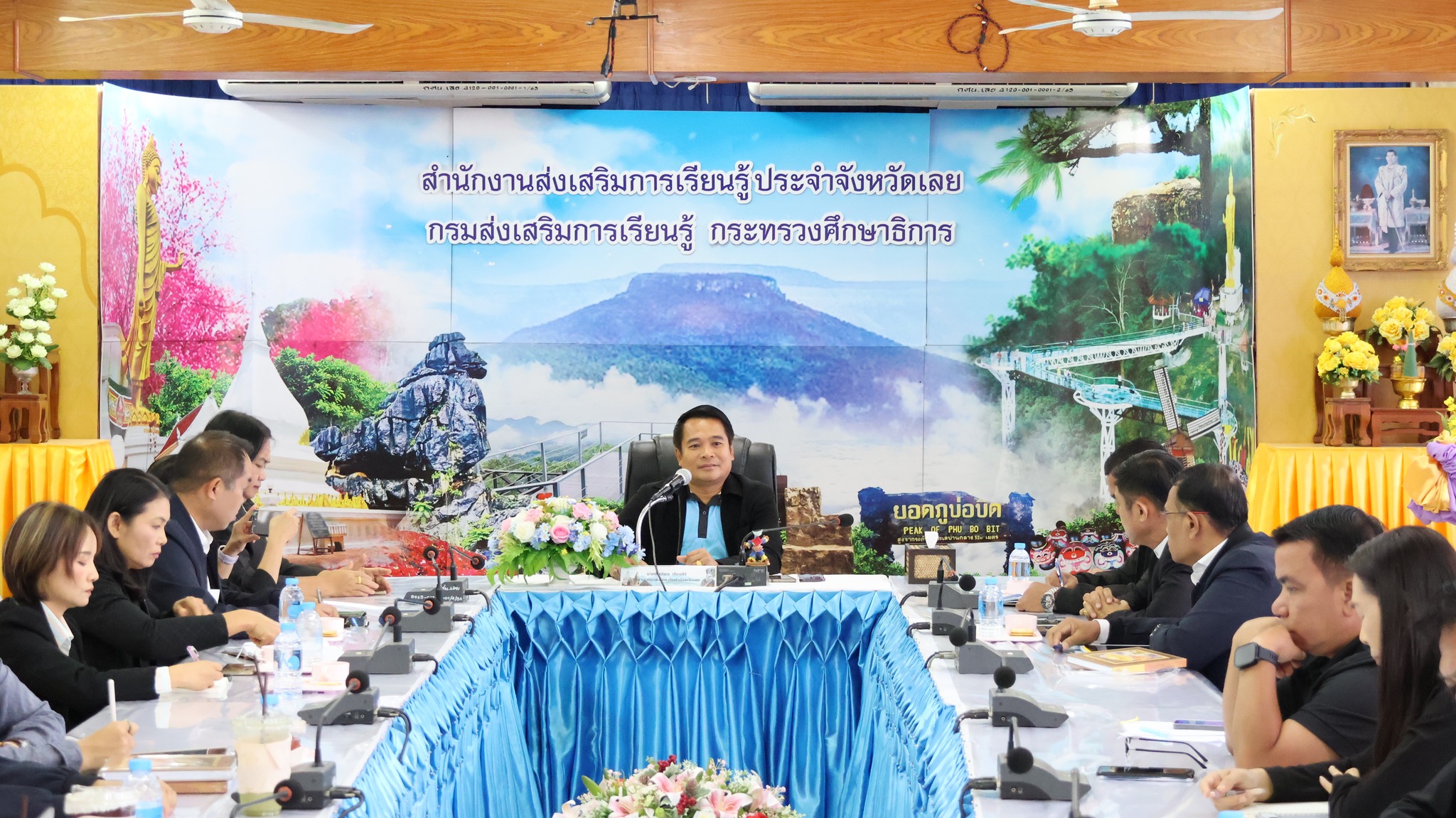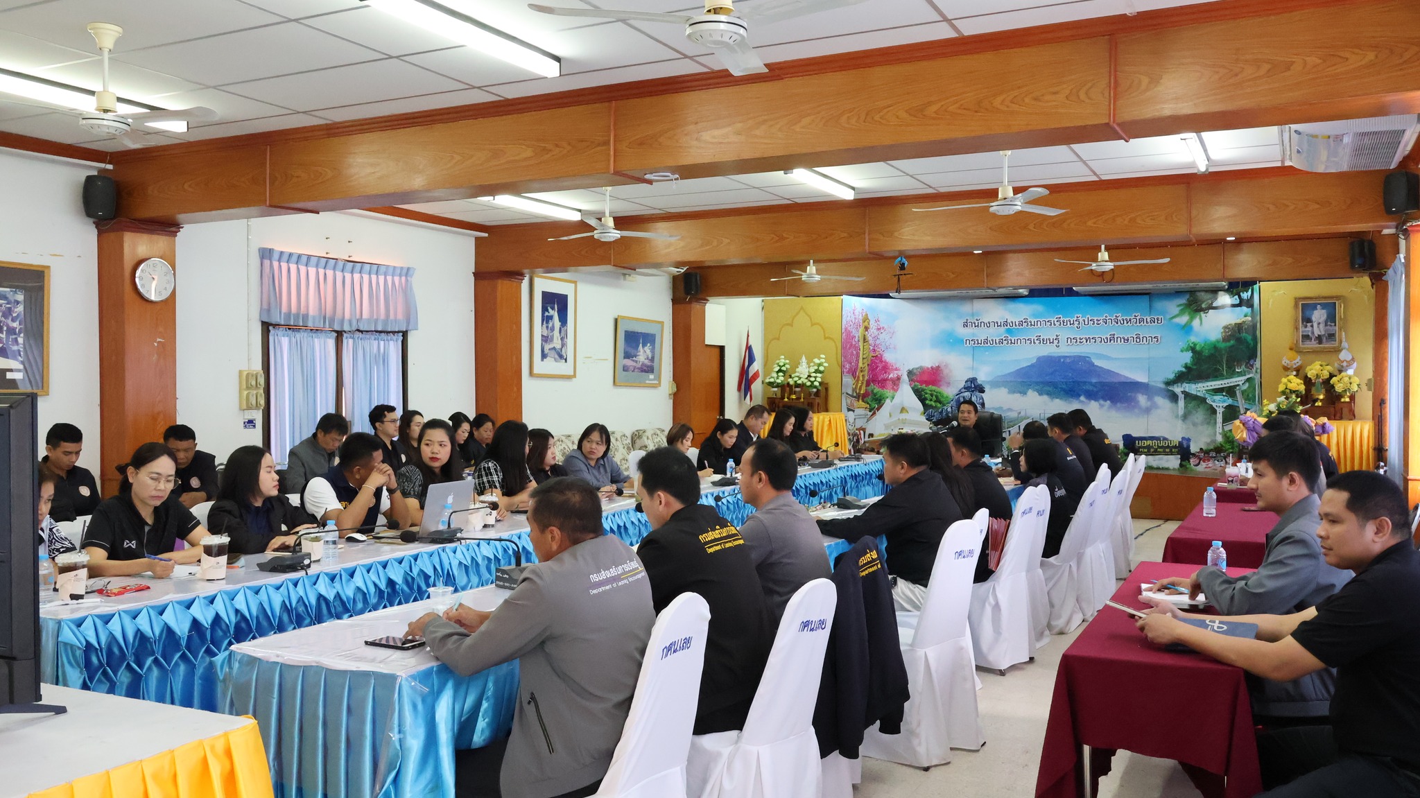โดยมีผู้บริหารสถานศึกษา ข้าราชการครูและเจ้าหน้าที่งานพื้นฐาน ทั้ง ๑๔ อำเภอ เข้าร่วมประชุมในครั้งนี้ ณ ห้องประชุมผีตาโขน ชั้น ๒ สำนักงานส่งเสริมการเรียนรู้ประจำจังหวัดเลย