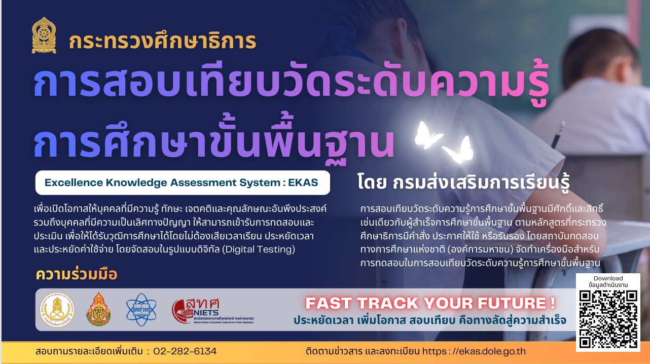 สกร. เปิดรับสมัคร "สอบเทียบวัดระดับความรู้ การศึกษาขั้นพื้นฐาน" (EKAS) ทางลัดสู่ความสำเร็จ