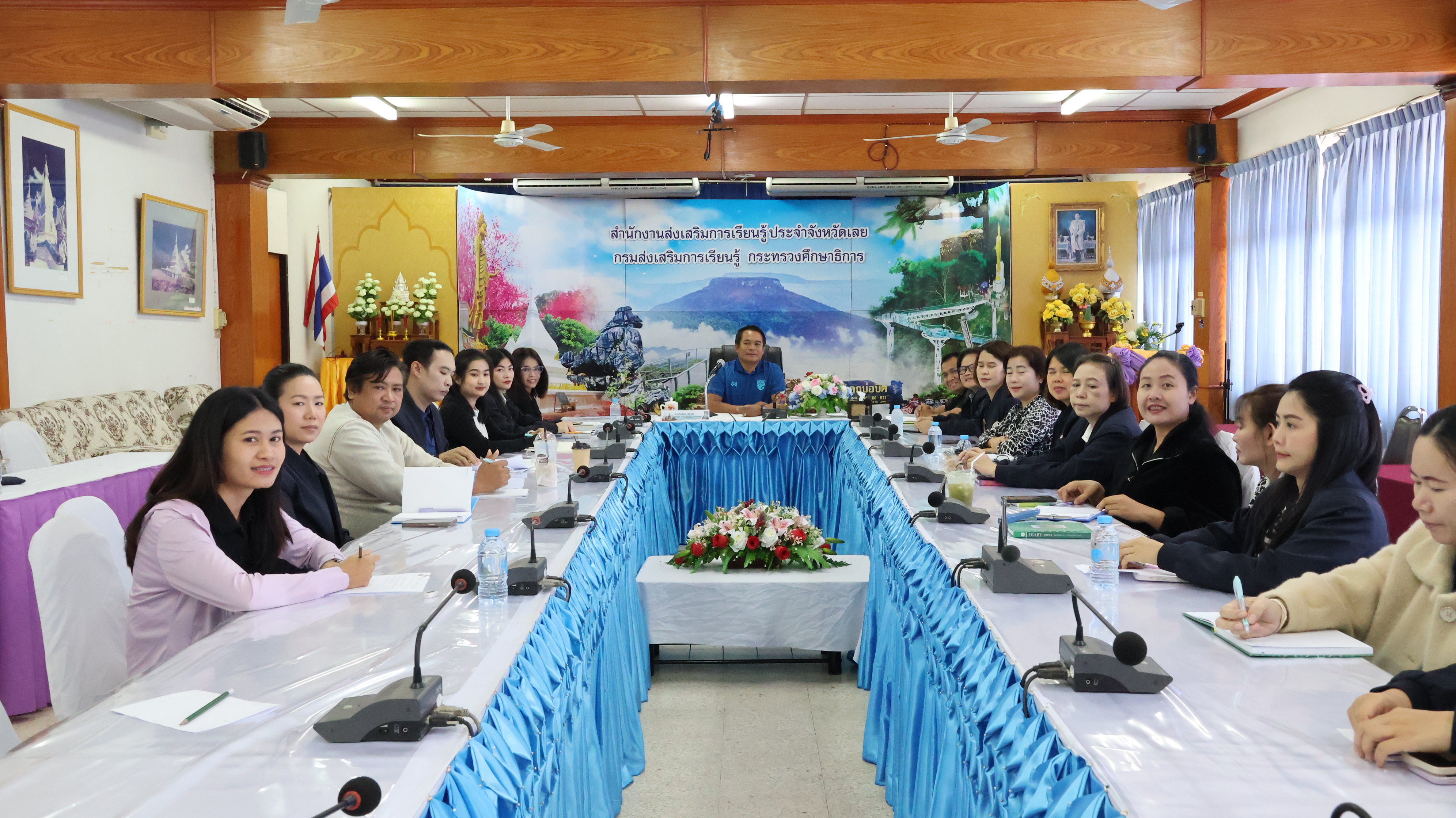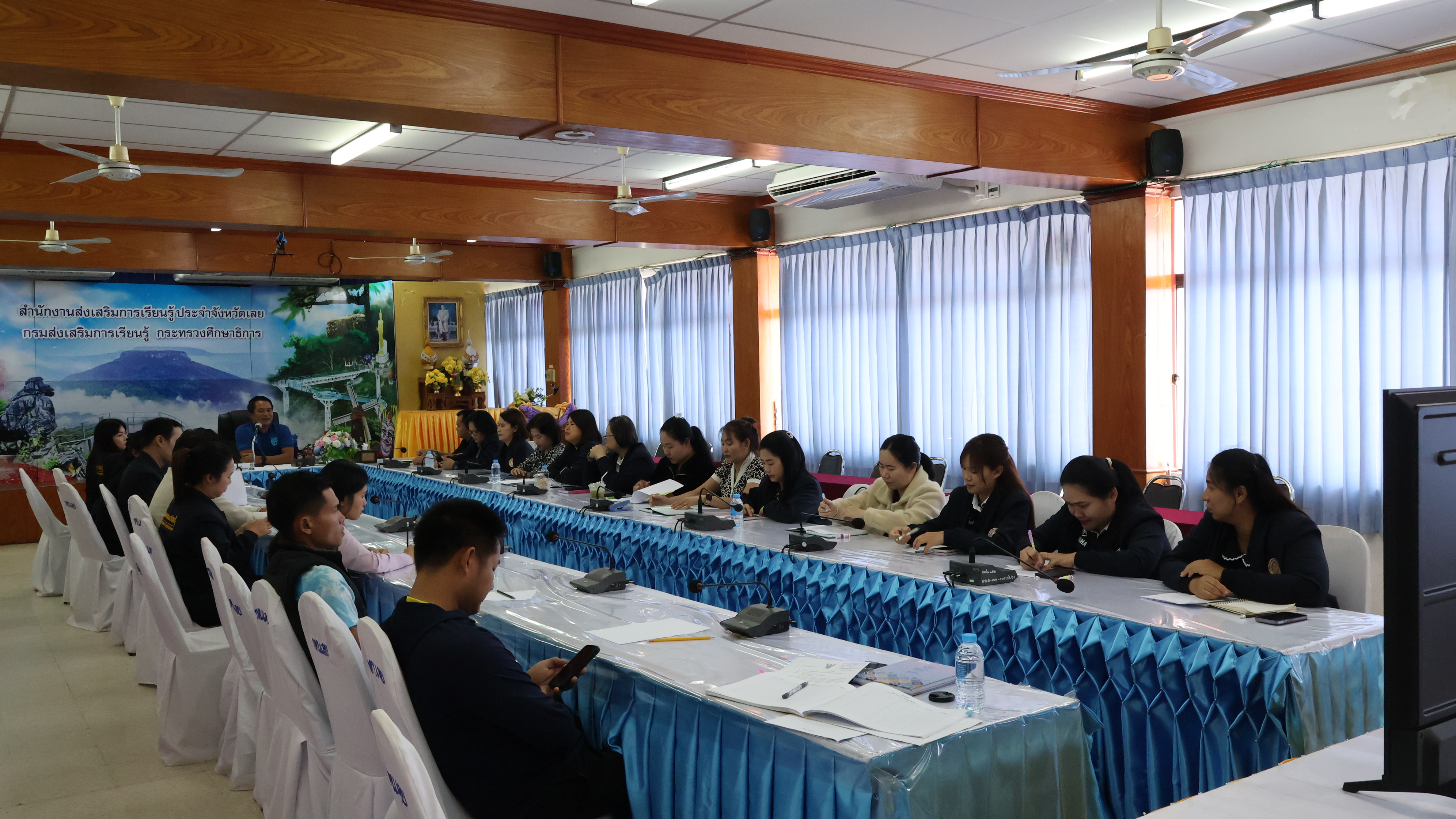 กันอย่างพร้อมเพรียง ณ ห้องประชุมผีตาโขน ชั้น ๒ สำนักงานส่งเสริมการเรียนรู้ประจำจังหวัดเลย